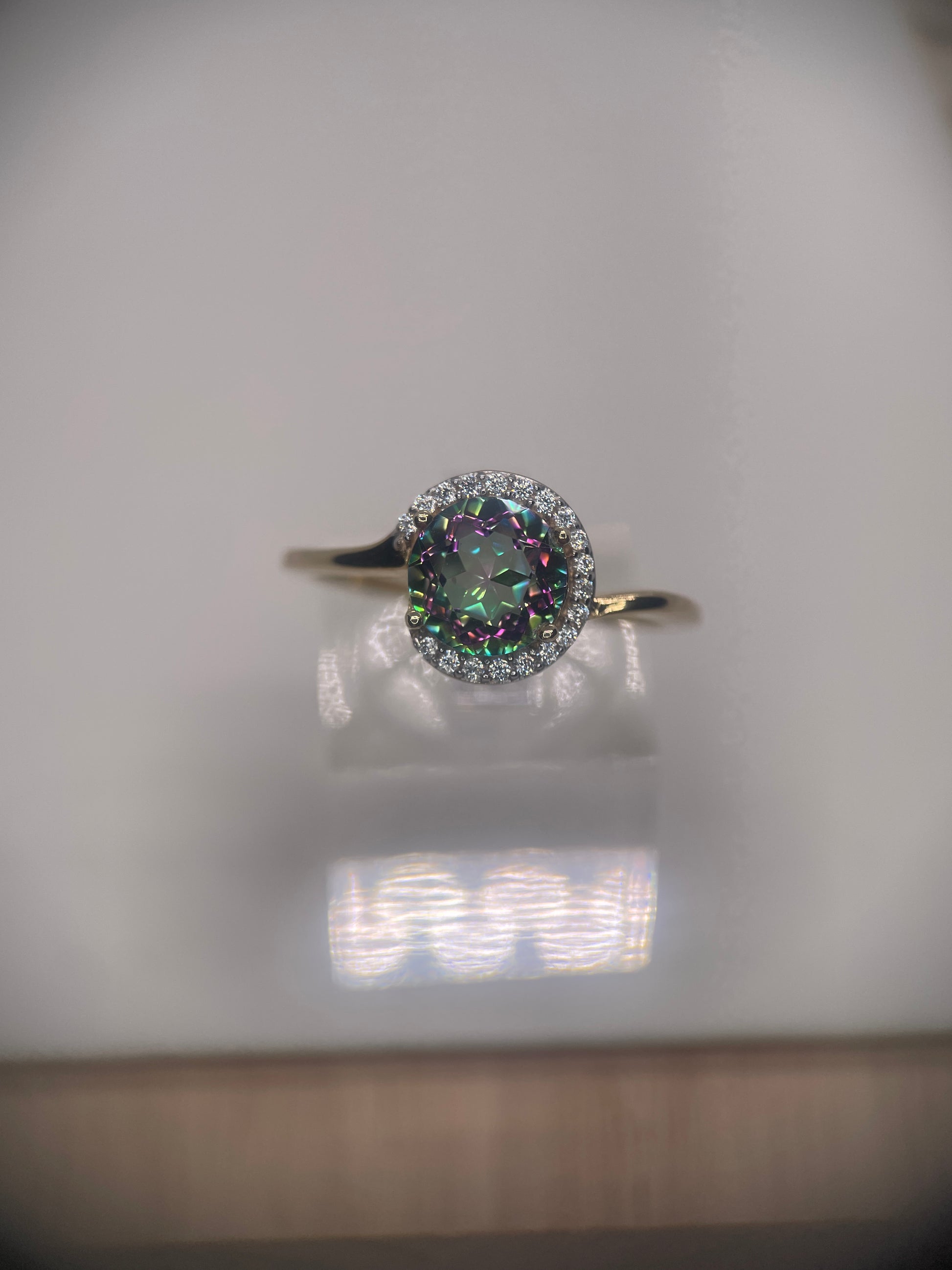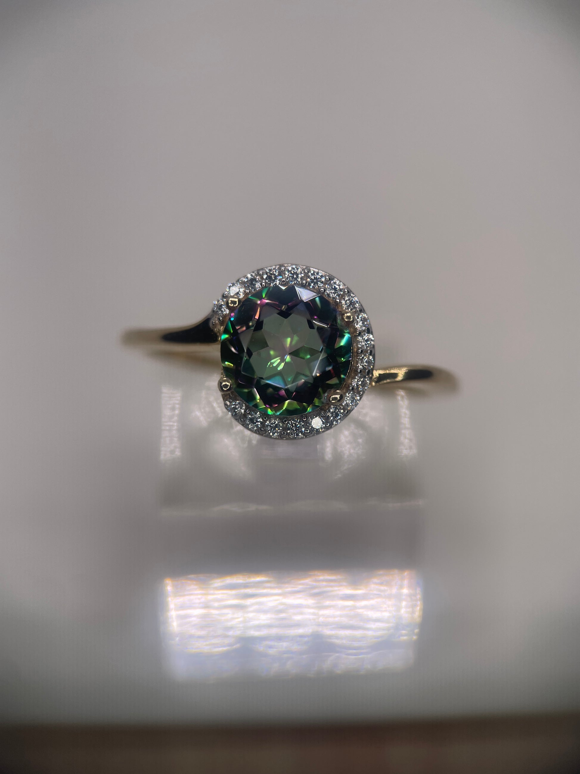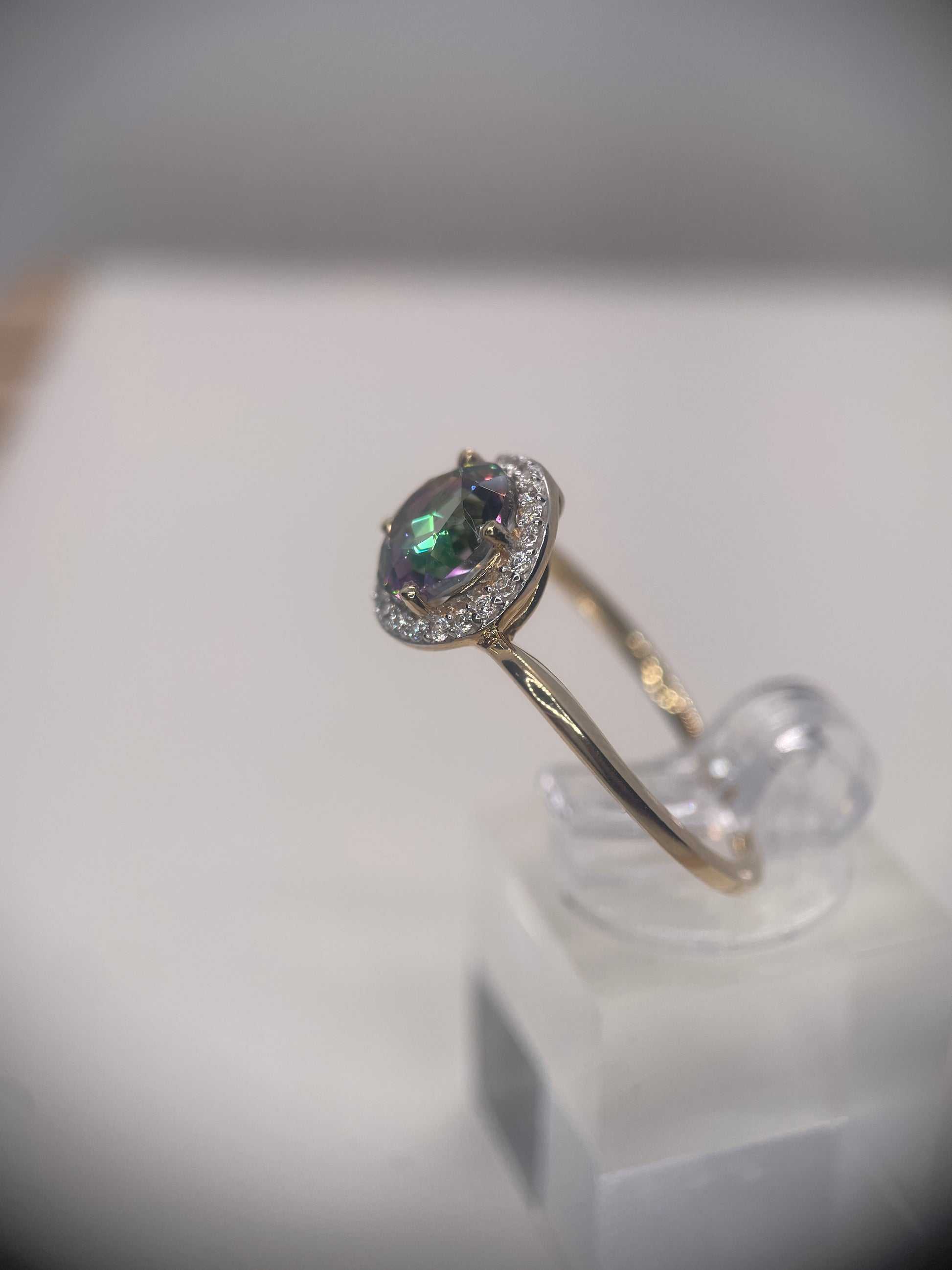 Mystic Quartz Gold Rhodium Plated Sterling Silver Ring.